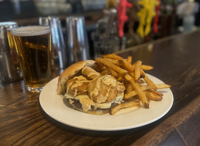 8 oz burger patty with fried pickles, Pepper Jack cheese, and a drizzle of cajun ranch. Served with beach fries. $17