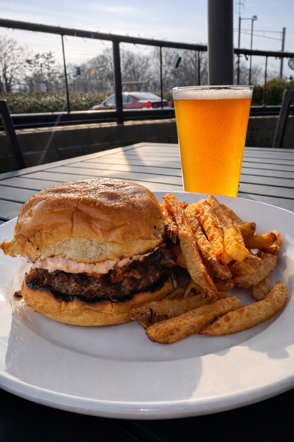 Subscribe To Burger Of The Week Alerts Burger of the Week – 3/08/26 Sun-dried Smoke Burger Burger patty topped with sun-dried tomato cream cheese spread, bacon bits, caramelized onions &wood grilled red peppers. $18 Best served with a Grateful Dead IPA